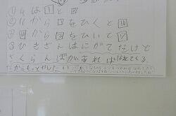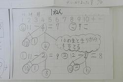 算数の引き算でサクランボ算を再確認するために、注意点を噴き出して書くなどの工夫がありました。