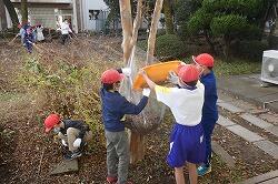 昨日の午後、4年生が落ち葉掃きをしてくれていました。