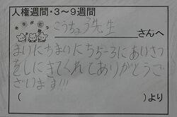 休み時間一人の2年生が「校長先生、お手紙です。」と言いながら、手紙を渡してくれました。