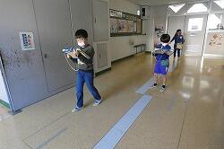 子供たちは給食前に方法で流れる歌で手の洗い方を覚えて、実践しています。泡が出るせっけんで手をしっかり洗い、感染症を予防していきます。