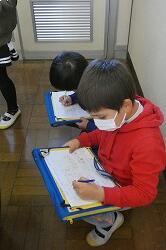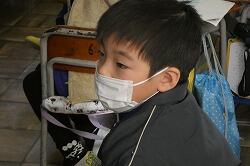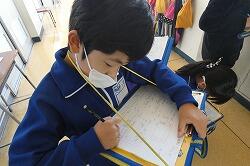 なんと半袖、短パン!「寒くないですか?」と尋ねると、「寒くありません。」と答えていました。寒さに強い1年生です。