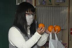 小さめのオレンジ、みかん、オレンジ色のレモンの3種類の果物があります。その中からみかんを探すことから国語の授業が始まりました。