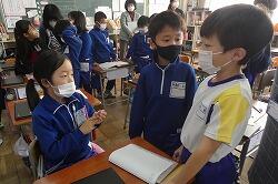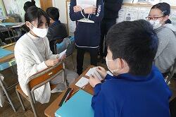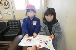 This is for you.と言って、外国語活動で作った英語のグリーティングカードを手渡してくれました。そこで、Thank you very much. Have a nice weekend. See you.と返すと、See you.と言いながら校長室を去っていきました。