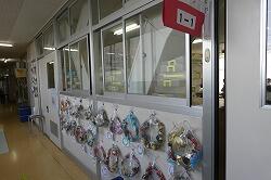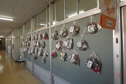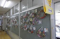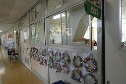 1年生の廊下に子供たちが作ったリースが飾られています。