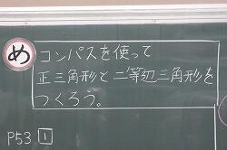 コンパスの使い方を学び、二等辺三角形を書くことができるようになりました。一人よりも二人、二人よりも三人、三人よりも全員で学びを深めることができました。その後、正三角形を書くことになり、子供たちは主体的に取り組んでいました。