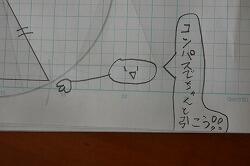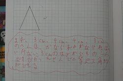 3年生の算数ではコンパスを使ってノートに二等辺三角形を書くことがめあてです。