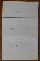 1枚のカードには1項目としています。その後グループで考えを発表し、整理します。