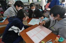 等分がうまくいかず、先生が説明で使った電子黒板をもう一度見る班もありました。