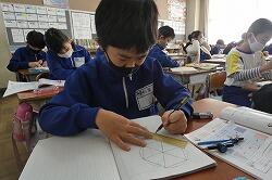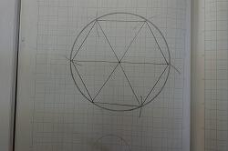 でも、教室に行ったときにはすでにできるようになっていて、円を使って正三角形を6つ作図することになりました。先生の説明を真剣に聞いている子供たちです。