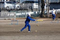 ピッチャーが柔らかいボールを投げ、バッターが打ちます。