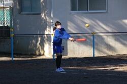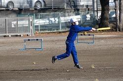 中学年ではティーボールで静止したボールを打っていましたが、高学年になると投げらたボールを打つのですね。