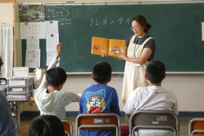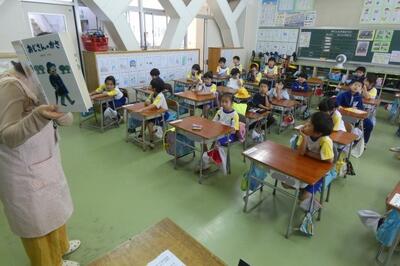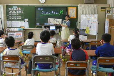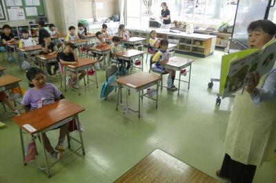 1年生となかよし・ひばりさんで、ボランティアさんによる読み聞かせ「くれよんタイム」がありました。