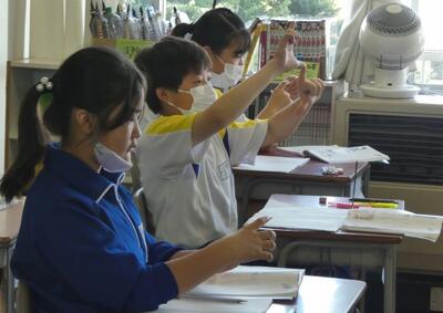この時間子供たちは、風の強さと物を動かす働きの関係を調べるための実験の仕方について、班ごとに作戦を練りました。