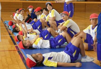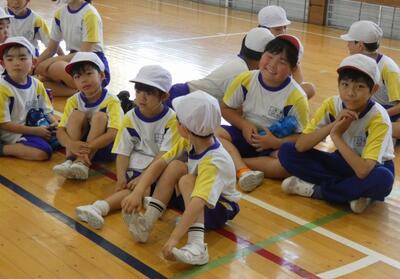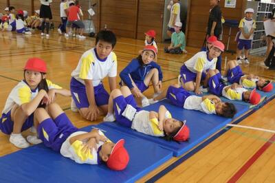 6年生は、テストのやり方のアドバイスや審判・記録のほか、会場移動や水分補給など、1年生の面倒をよく見てくれました。