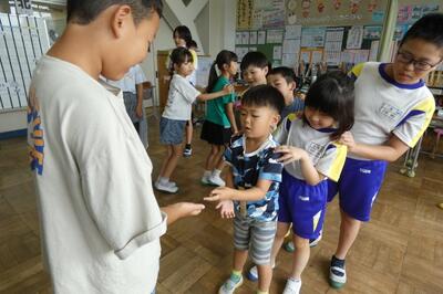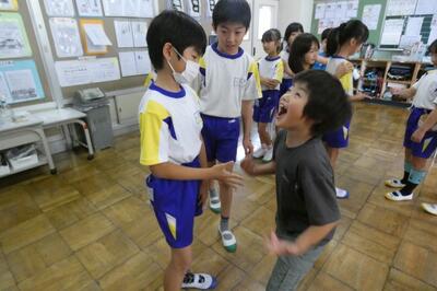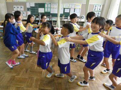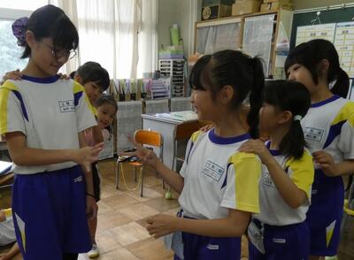 「なかよし集会」が行われました。「なかよし集会」は、児童会が主催する縦割り班活動です。普段はこの班で清掃活動を行っていますが、今日はクイズやレクリエーションなどを楽しみました。1年生は初体験なので、ワクワクドキドキです。