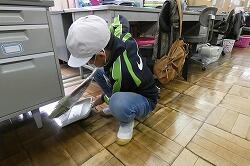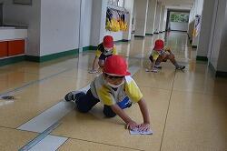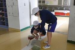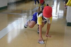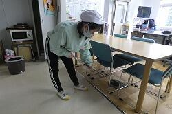 黙々と手を動かす子供たちです(6年・職員室清掃)