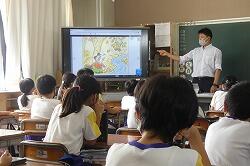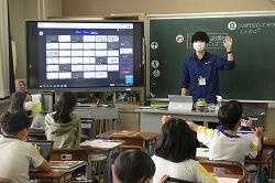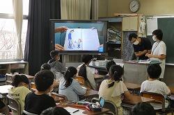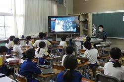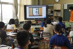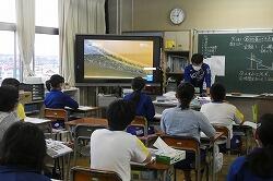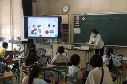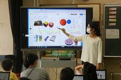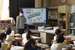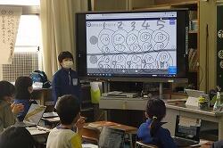 授業者が児童のワークシートを写真に撮り、電子黒板に掲示しました。児童が発表します。