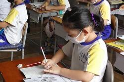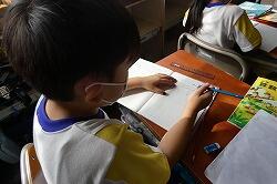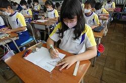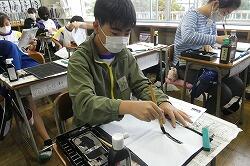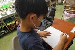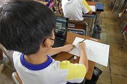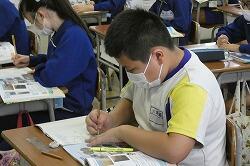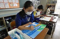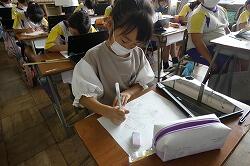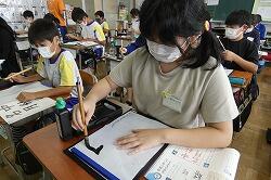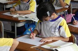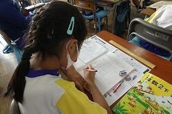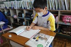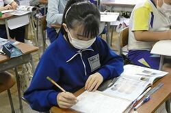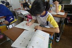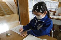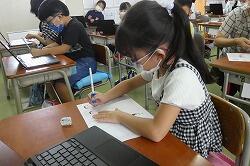話し声が一切聞こえず、全集中で書いている6年生です。