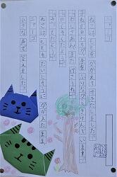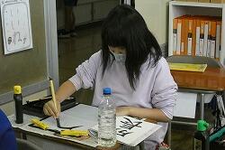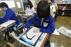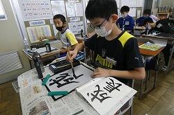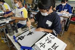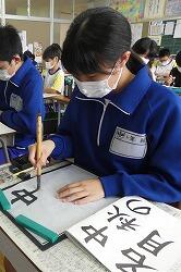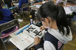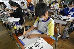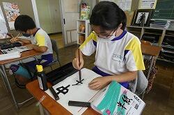 6年の国語・書写は毛筆です。5文字を書くので、用紙にあった文字の大きさを考えながら書きます。
