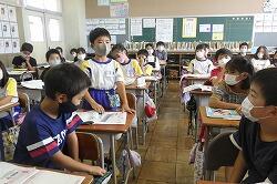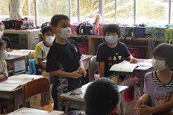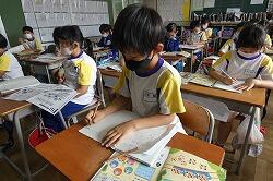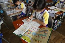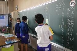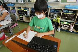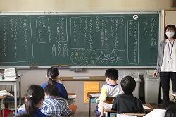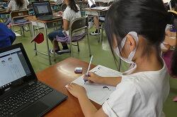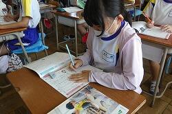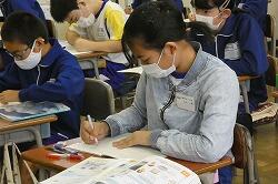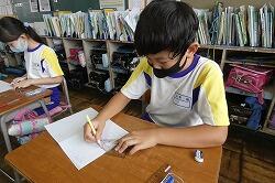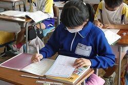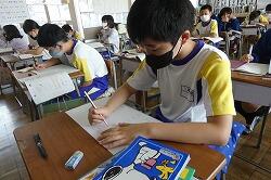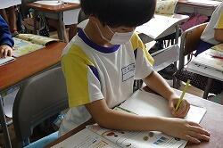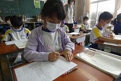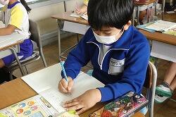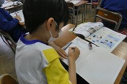 子供たちは教科書を閉じて、これまでの自分を振り返り、ノートに書いていきました。