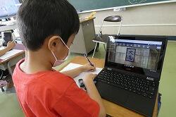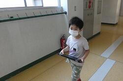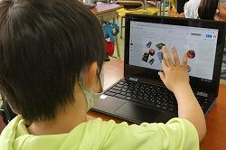 今日の算数では箱の形を分類する活動を行いましたが、教科書・ノートは一切使いませんでした。タブレットのみを活用し、学習内容を確実に理解した子供たちでした。