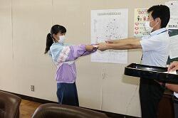 お昼の放送で学級委員を紹介し、給食後、校長室で代表児童に任命書を手渡しました。