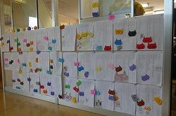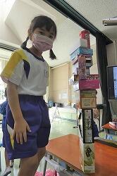 1年生の図工ではいろいろな形の箱を高く積み上げていました。