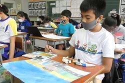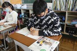 5年生の図工では生活の中で心に残ったことや様子を絵に表現していました。