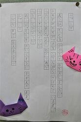 このときの猫と子ネズミの気持ちを文章の言葉から考えていくのが今日のめあてです。ワークシートに書いていきます。