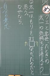 「教科書はもう使いません。閉じてください。」と担任が話しました。教科書は使わないことには理由があります。教科書を読んで登場人物の気持ちなどを考えた後に、自分を振り返る活動があります。そのときに担任が上記のように話したのです。