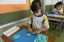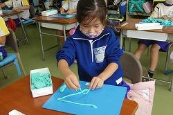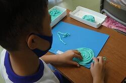 先生の話を聞いたら早速活動開始です。ねんどをひも状にして創作します。
