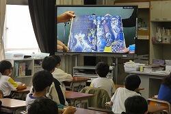 電子黒板を見ながら読み聞かせを聞いて、「おだんごぱん」に浸っていました。