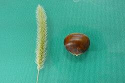 登校時、1階の廊下で猫じゃらしを、4階の廊下で栗をいただきました。