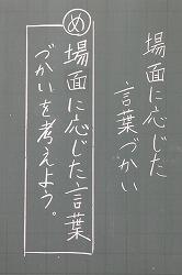 このやり取りを聞いて子供たちは次第にざわつき、「先生、だめだよ。」という声も聞こえてきました。実はこれ、ヤラセなのです。適切ではない言葉に気付き、どのような言葉を使えばいいかを考えさせるきっかけにしたのです。そこで今日のめあてはこのようになりました。