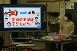 放課後、自由参加の「ミニ研修」を行いました。ベテランが講師となり授業の導入の工夫事例を、実践を交えて紹介しました。参加した職員は導入について学ぶことができました。