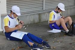 19か月ぶりの出来事が今日起こりました。6年生が音楽で久しぶりにリコーダーの練習をしたのです。屋外でソーシャルディスタンスをとっての練習です。