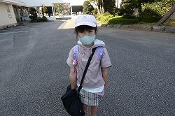 「会話する=マスクする」ですので、マスクをきちんと着用してあいさつをしていました。