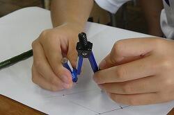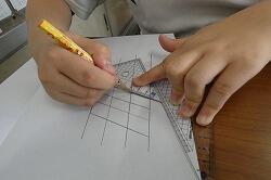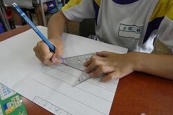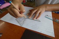 平行な線を引くには三角定規を二つ使うことが必要なことを理解し、活用していました。