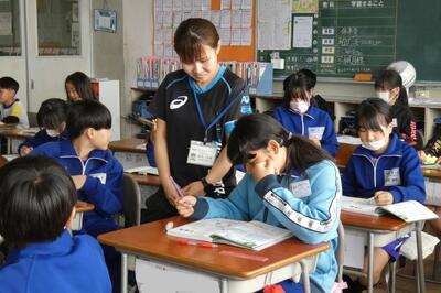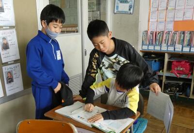 1年生が教室に着いてからは、連絡帳の提出や荷物の移動・整理整頓を、6年生が教えてくれています。 6年生の皆さん、ありがとう!!