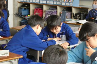 物語を六つの場面に分けた後、今日は「一の場面」について学習しました。みんなで声に出して「一の場面」を読んだ後、風のゆうびんやさんの様子が分かる言葉や文を、物語から抜き出していました。
