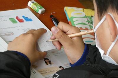 「さくらんぼ計算!!」・・・1年生の算数でたくさん使った技「さくらんぼ計算」を使えば、これまで習ったことを生かしながら、今日の課題をクリアできることに気が付いたようです。「さくらんぼ計算」とは、1つの数字を2つに分解して計算する方法です。
