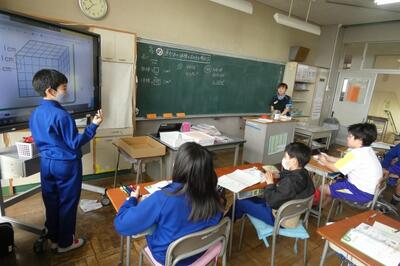 5年4組の算数科の授業におジャマしました。体積の学習です。