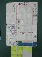 4年生のある学級の廊下に、国語科の授業で作った新聞が掲示されています。