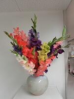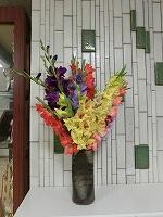 昨日、地域の方からたくさんのグラジオラスをいただきました。玄関などに活けています。梅雨で気分も落ち込みそうですが、おかげで学校が華やかになり、気分も晴れてきました。