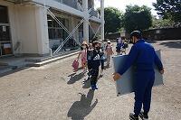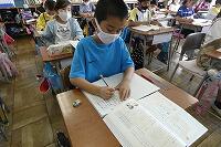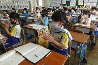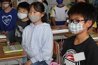 3年生が教科書に出てくる漢字を学習しています。みんなで空に書きます。