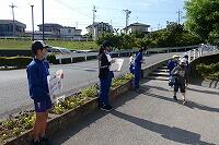 児童会運営委員があいさつ運動を展開中です。西昇降口では4名の委員があいさつを率先して呼びかけていました。