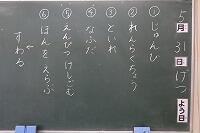 登校時、1年生の廊下を歩いていると、黒板に何か書かれています。