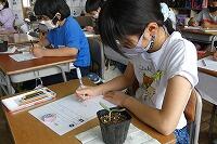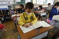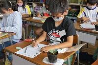 漢字を一つ一つ身に付けようと、正しい姿勢で書いている3年生でした。