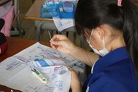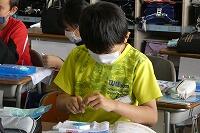 子供たちは安全に注意しながら丁寧に活動しており、玉結び、玉どめができるようになってきました。