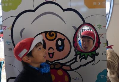 西生3年生への歓迎メッセージボードの前でパチリ。